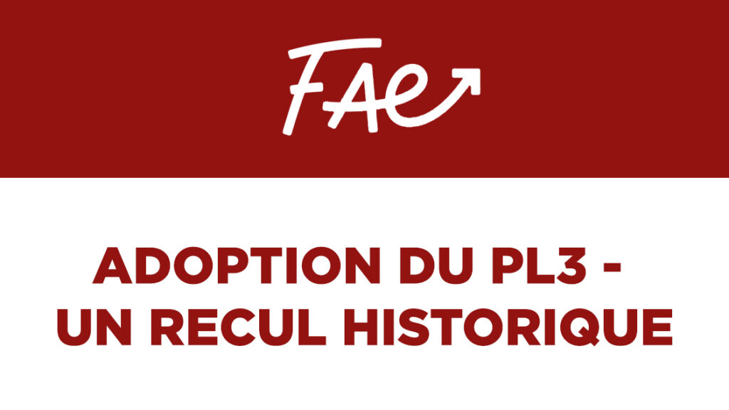 Communiqué FAE – Adoption du PL3 – Un recul historique