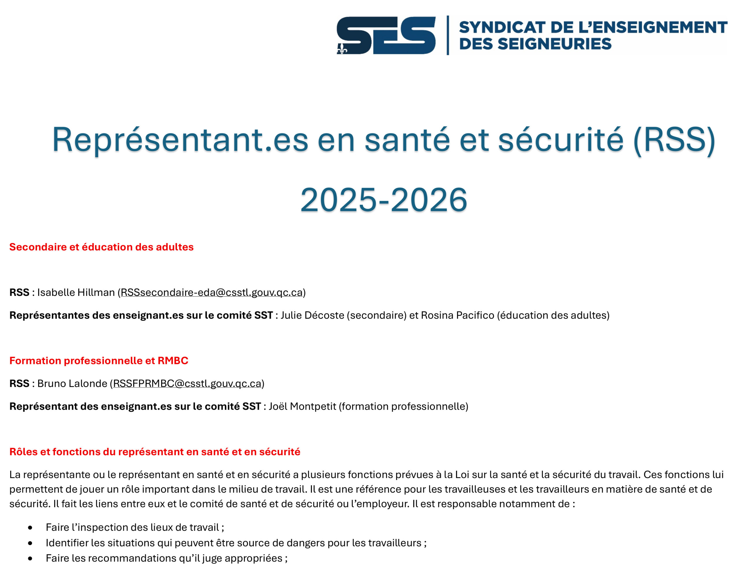 Représentant-es en santé et sécurité (RSS) 2025-2026